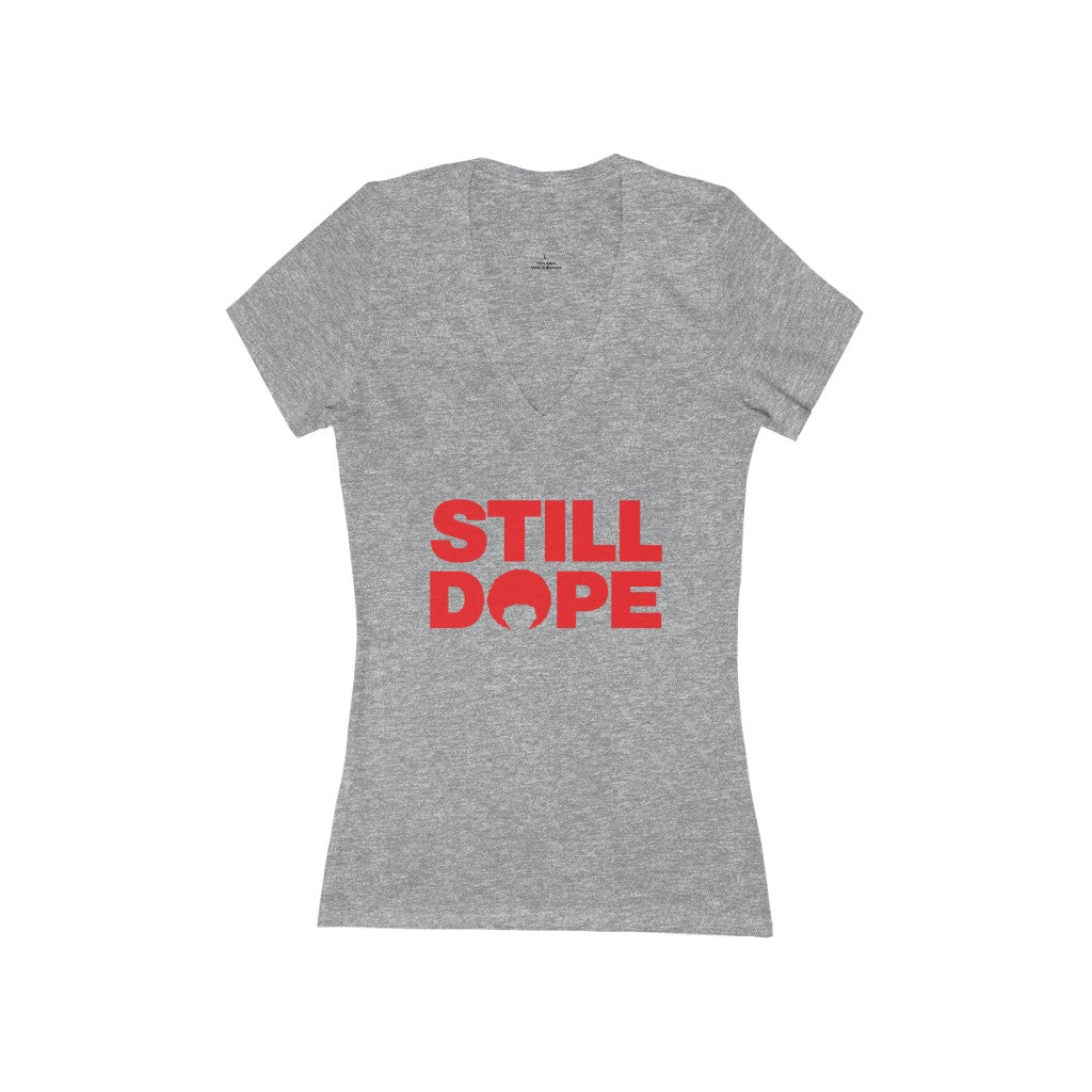 STILL DOPE Women's V-Neck Tee (Red Logo)